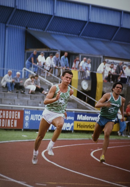 ... nach 4 Lehrjahren als Allrounder (Lauf, Sprung, Wurf) beim TV Reichenbach startete Thomas Nitsch ab 1985 in der Sprinter-Hochburg von SALAMANDER Kornwestheim. Spezialität: 100m Sprint und 4x100m Staffel mit einer Bestzeit von 10,51 Sekunden. Neben Deutschen Meisterschaften und Länderkämpfen genoss der heutige Dipl. Ingenieur trotz hartem Training die grossen internationalen Wettkämpfe auf der ganzen Welt. Er lief gegen Welt- und Olympiasieger, studierte und trainierte in den USA und lernte viele internationale Stars der Leichtathletik kennen. In 13 aktiven Jahren stand Nitsch 39 mal bei Europa-, Deutschen-, Süddeutschen- und Landesmeisterschaften auf dem Treppchen, darunter waren 18 Titel. Ein Fazit zieht Nitsch mit den Worten: "Ich bin stolz und glücklich über die schöne Zeit als Sprinter" ...